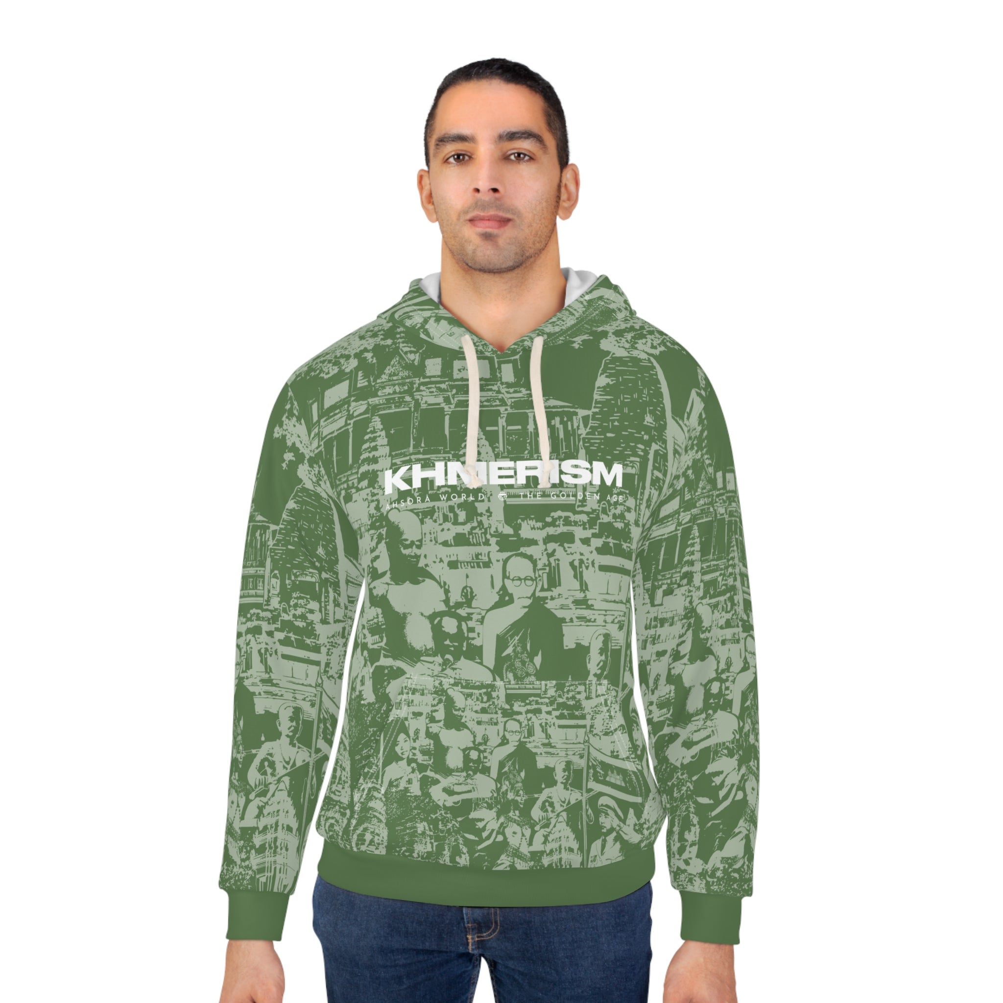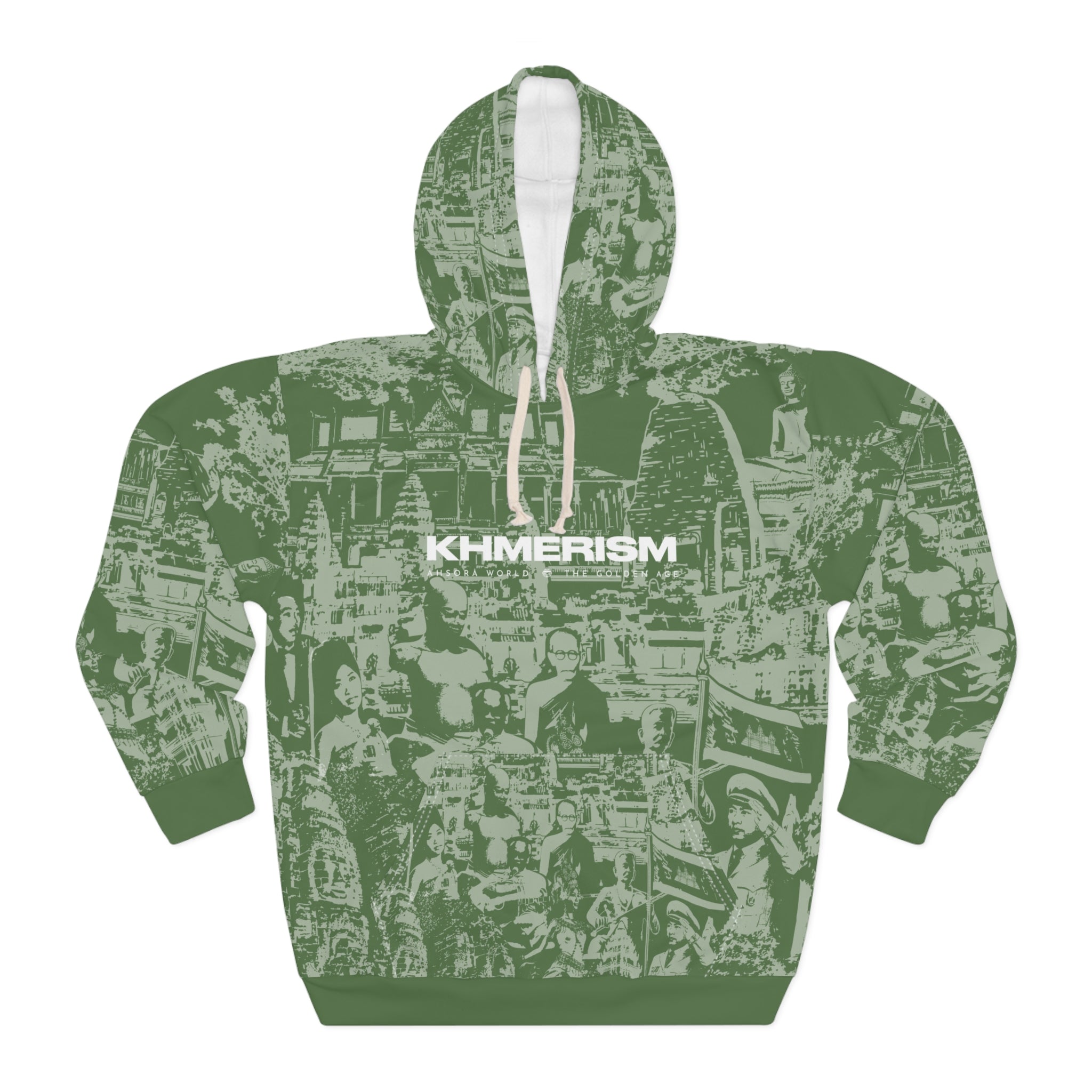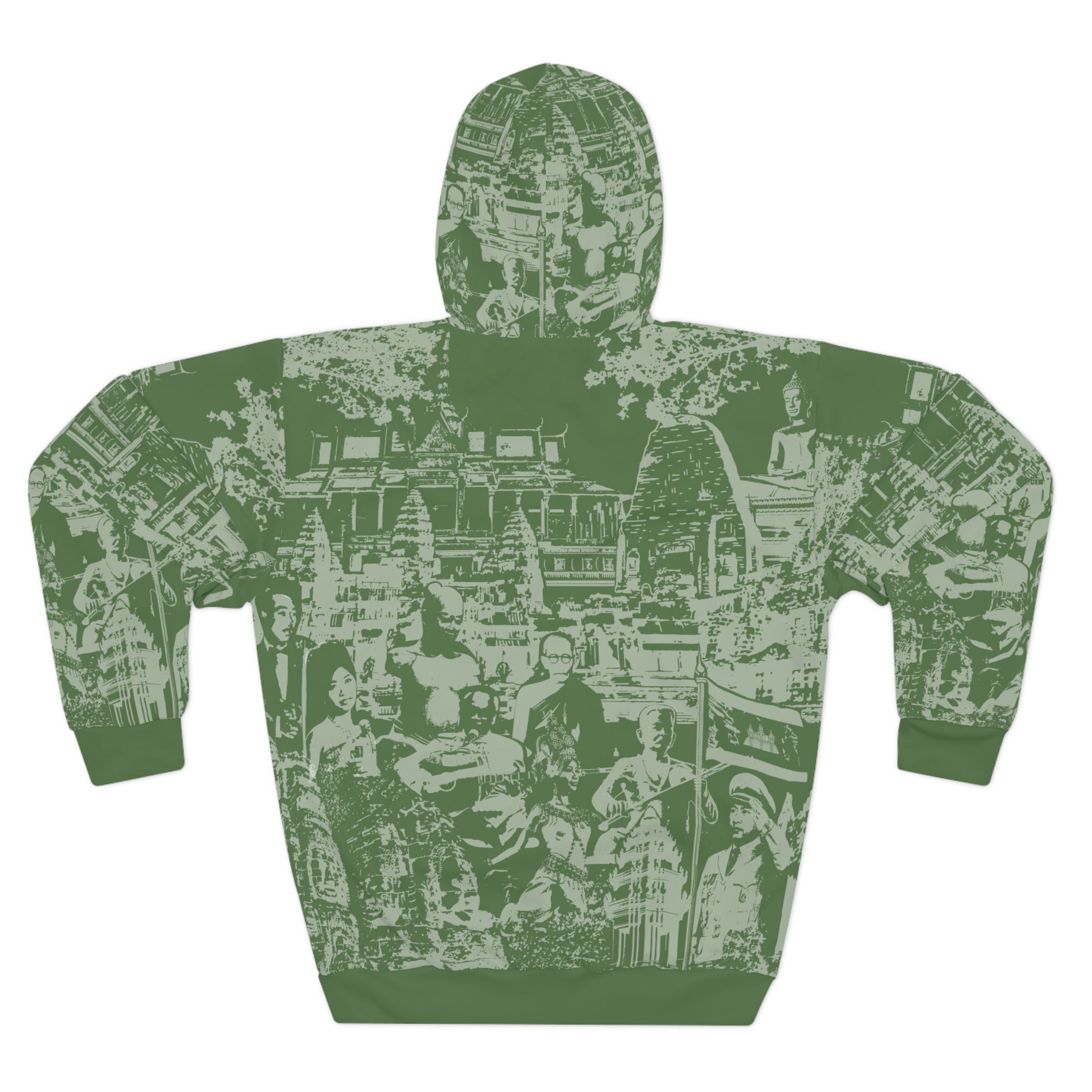 This hoodie carries Cambodia with quiet confidence. The monochrome illustration stitches together Angkor Wat, Lok Ta Krorm Ngoy, King Norodom Sihanouk, and an Apsara dancer into a single emblem of Khmer memory. Wear it to remember, to honor, to start conversations—its silhouette reads like a personal statement about roots and resilience. The cut-and-sew construction keeps the artwork aligned across seams so the image stays strong. Breathable polyester and a tagless interior let you move through festivals, remembrance services, community meetups, or relaxed days at home without fuss. It settles into your routine like a familiar story: respectful, steady, and unmistakably connected to heritage.