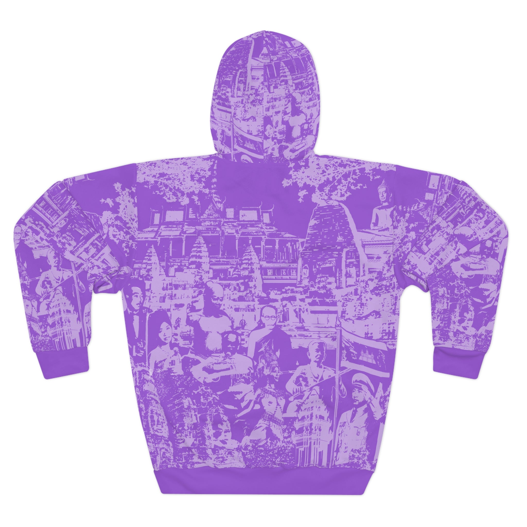 This hoodie carries Cambodia with quiet confidence. The monochrome illustration stitches together Angkor Wat, Lok Ta Krorm Ngoy, King Norodom Sihanouk, and an Apsara dancer into a single emblem of Khmer memory. Wear it to remember, to honor, to start conversations—its silhouette reads like a personal statement about roots and resilience. The cut-and-sew construction keeps the artwork aligned across seams so the image stays strong. Breathable polyester and a tagless interior let you move through festivals, remembrance services, community meetups, or relaxed days at home without fuss. It settles into your routine like a familiar story: respectful, steady, and unmistakably connected to heritage.
