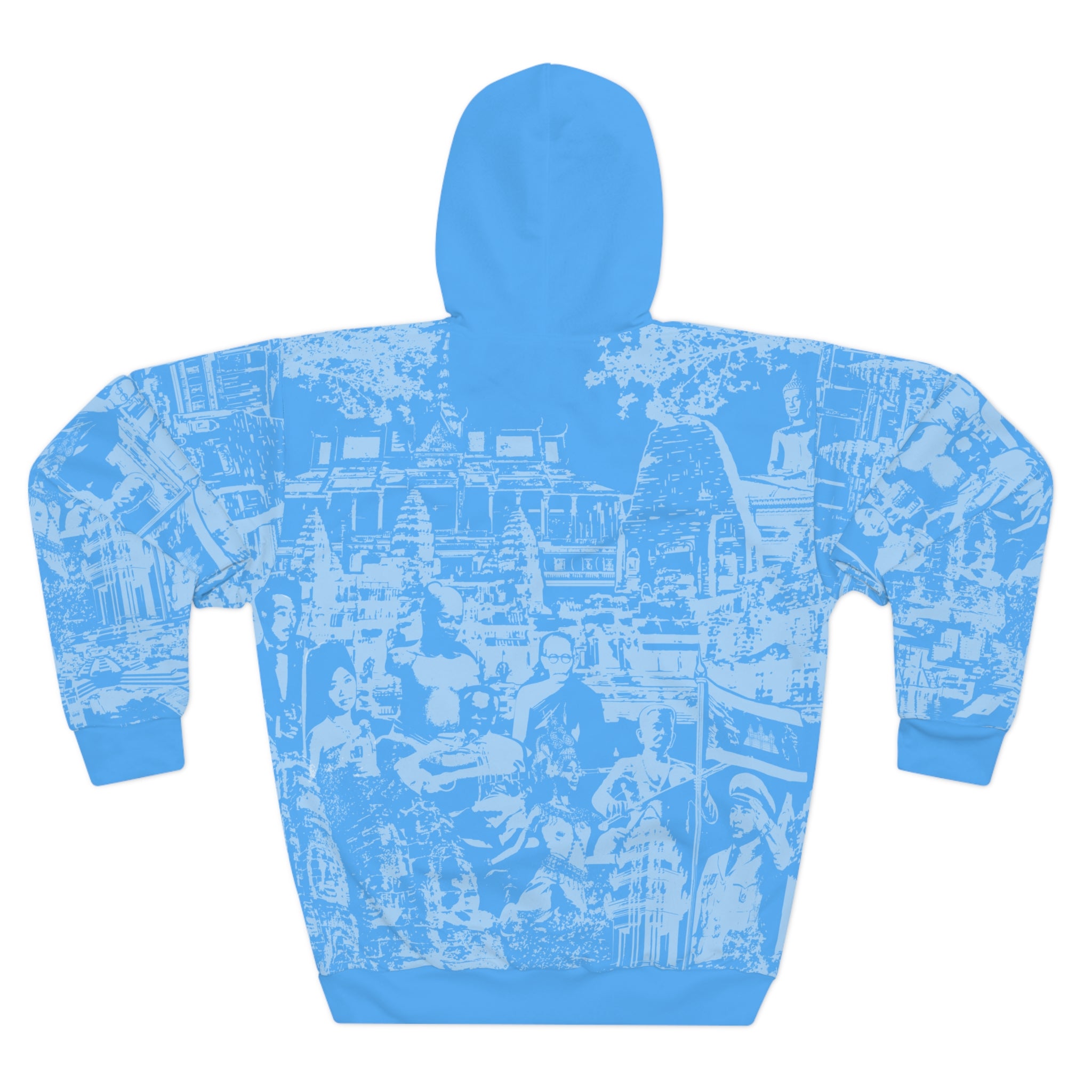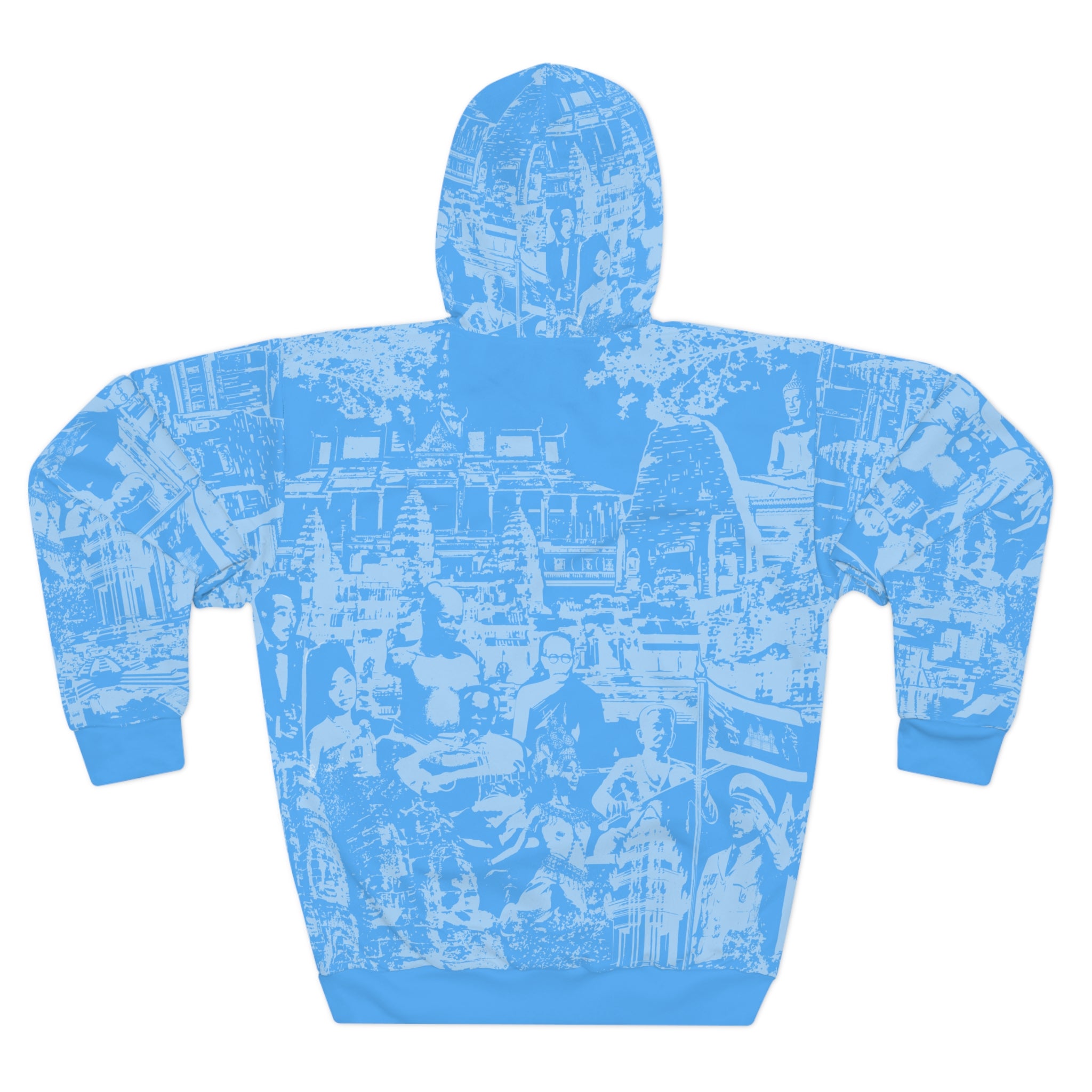 This hoodie carries Cambodia with quiet confidence. The monochrome illustration stitches together Angkor Wat, Lok Ta Krorm Ngoy, King Norodom Sihanouk, and an Apsara dancer into a single emblem of Khmer memory. Wear it to remember, to honor, to start conversations—its silhouette reads like a personal statement about roots and resilience. The cut-and-sew construction keeps the artwork aligned across seams so the image stays strong. Breathable polyester and a tagless interior let you move through festivals, remembrance services, community meetups, or relaxed days at home without fuss. It settles into your routine like a familiar story: respectful, steady, and unmistakably connected to heritage.